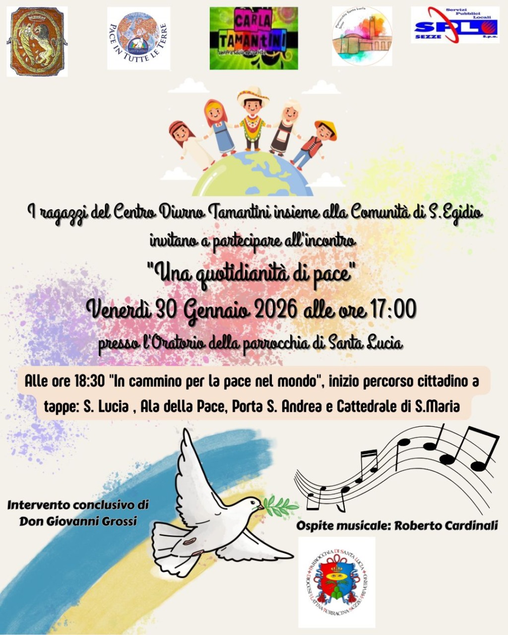 La SPL – Servizi Pubblici Locali di Sezze partecipa attivamente all’iniziativa “In cammino insieme per la Pace”, promossa in collaborazione con la Parrocchia di Santa Lucia, la Comunità di Sant’Egidio e diverse associazioni locali.