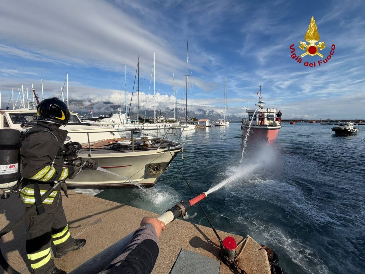 Un incendio su un'imbarcazione presso il distributore di carburante del molo Flavio Gioia ha rappresentato il focus dell'addestramento.