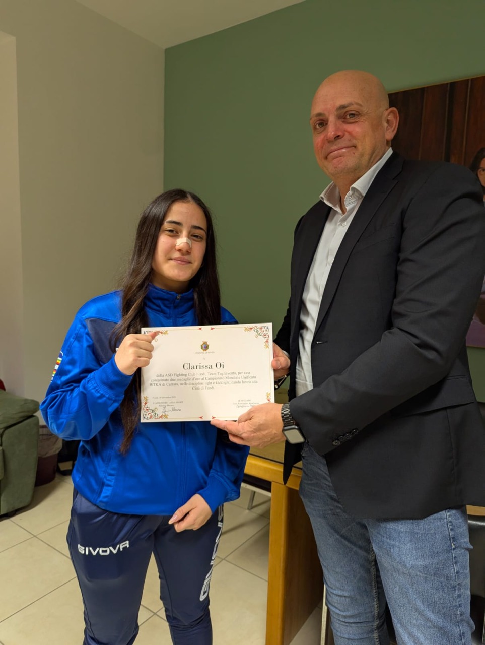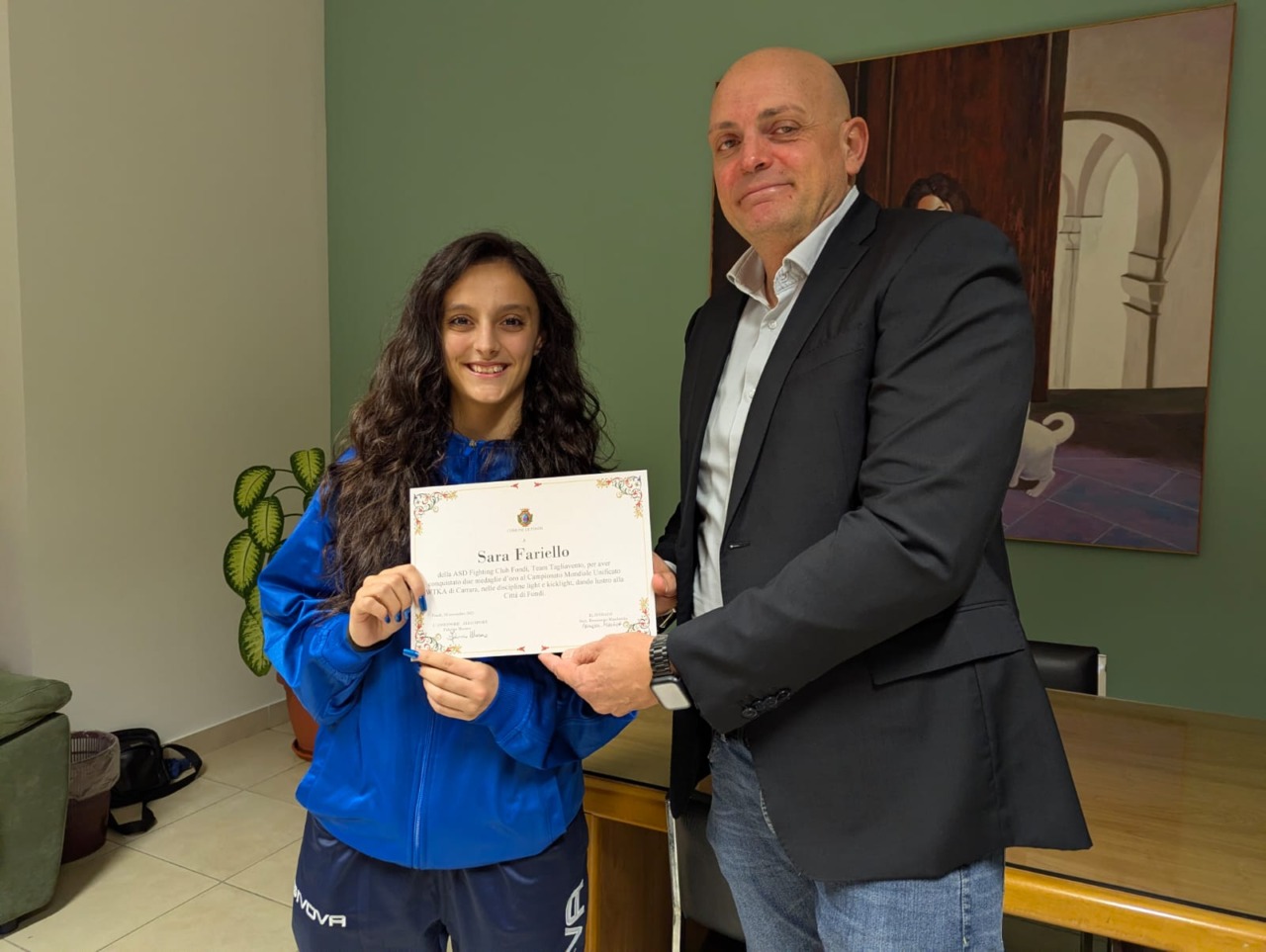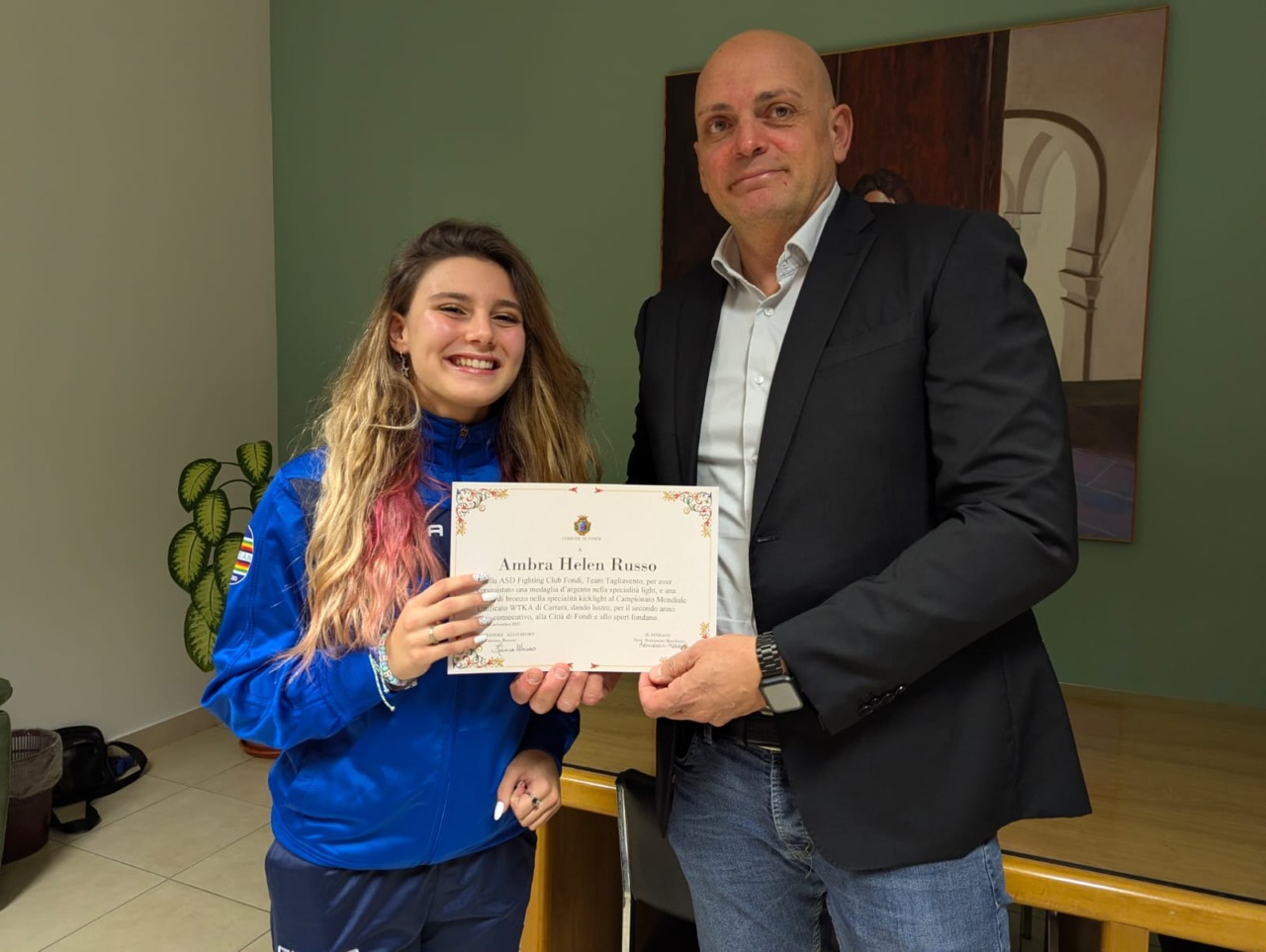 Ambra Helen Russo, della ASD Fighting Club Fondi, ha ottenuto una medaglia d’argento nella disciplina light e una di bronzo nella kicklight, confermandosi sul podio per il secondo anno consecutivo. I Maestri Luigi Tagliavento e Gabriele Di Manno, che seguono e motivano gli atleti, hanno espresso gratitudine al Comune di Fondi per il riconoscimento ricevuto, sottolineando l’importanza di tali premi per ispirare sia i praticanti che coloro che desiderano avvicinarsi all’agonismo.